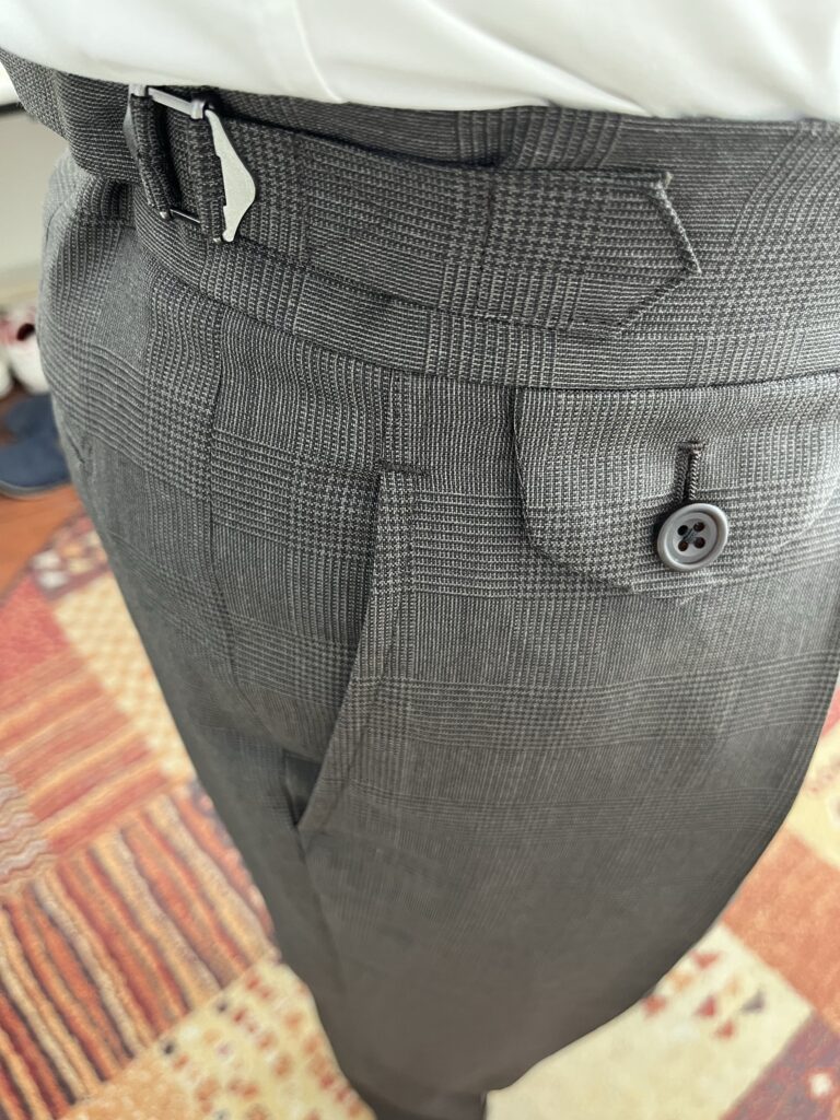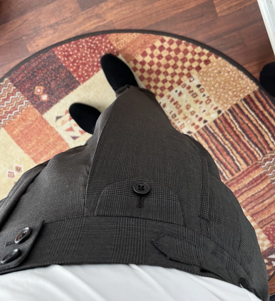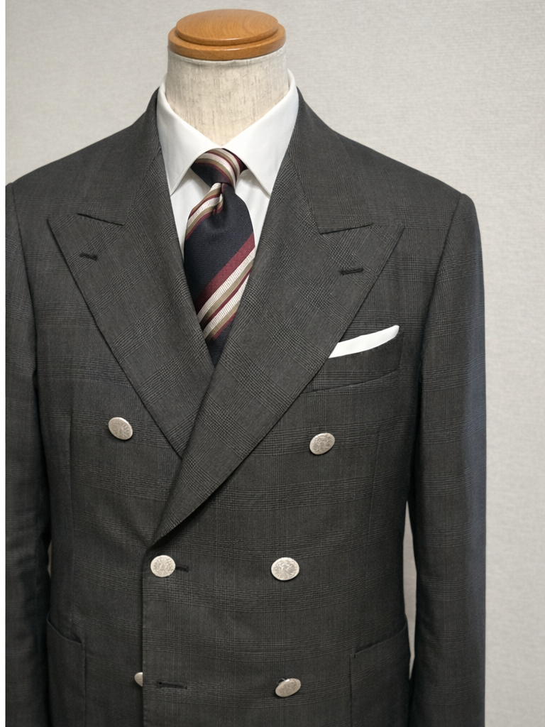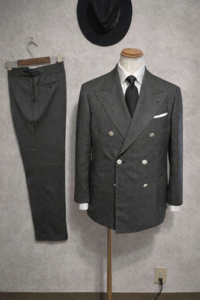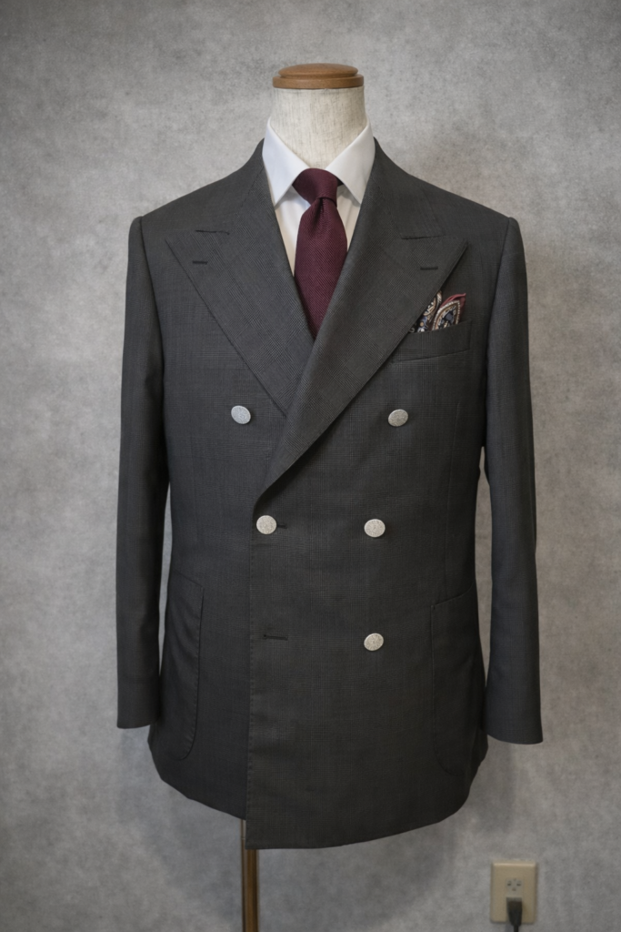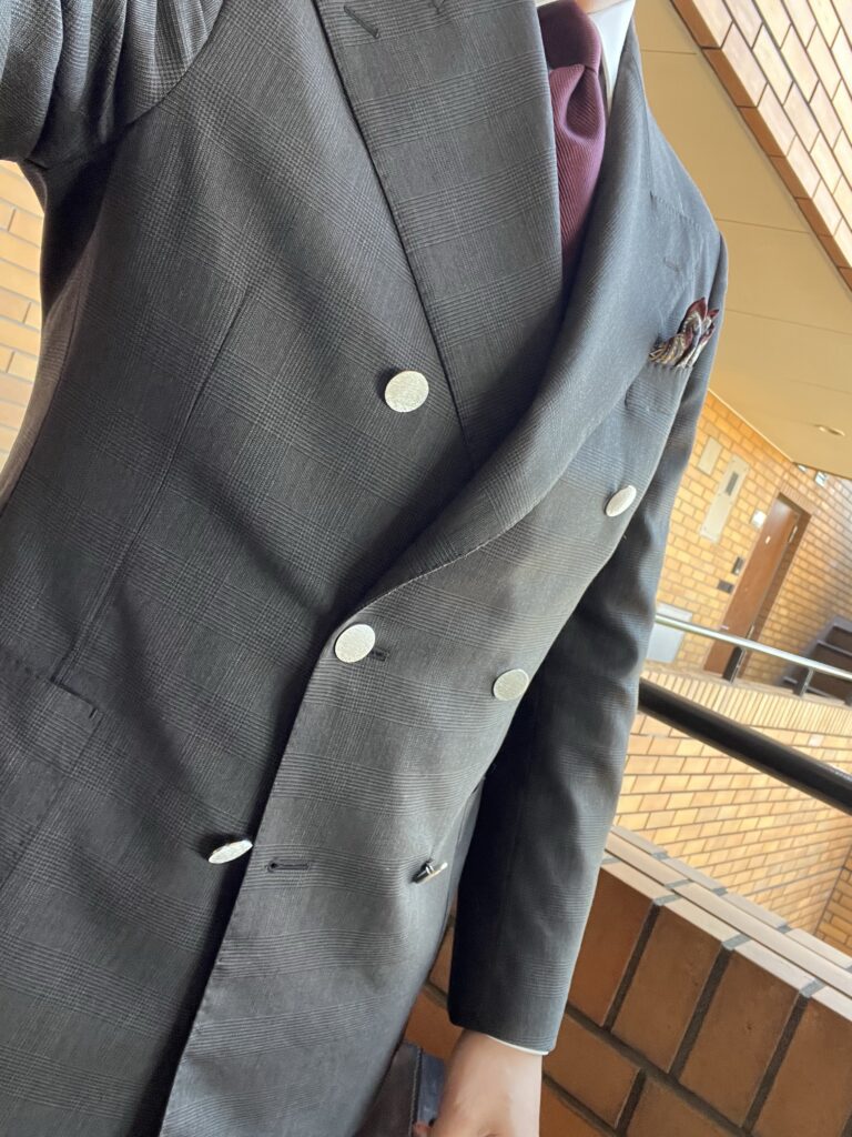 このスーツ、私用の春夏スーツです。